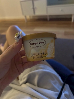 こんばんは🧸❤️ ホワイトチョコ大好きだから期待してたのに上に乗ってるサクサクがパン粉みたいでやだった😢笑 最近毎日アイス食べてるなあ🫠 今日も21時からお店いてるので会いに来てください🐣🐣🐣 お待ちしています🙆♀️✨