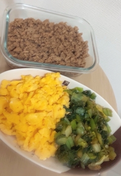 だいすきな そぼろ 作り置き💕 朝ごはんのつもりが 我慢できず 夜中に 食べてもた😕