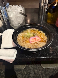 かすうどーん! やっぱり深夜のうどん欲には勝てない!! 酔った時に出汁がしみます! いつもありがとうございます😭 あしたもがんばれるー!